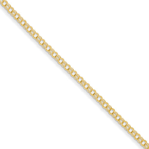 14k Yellow Gold 2.50mm Solid Double Link Charm Bracelet